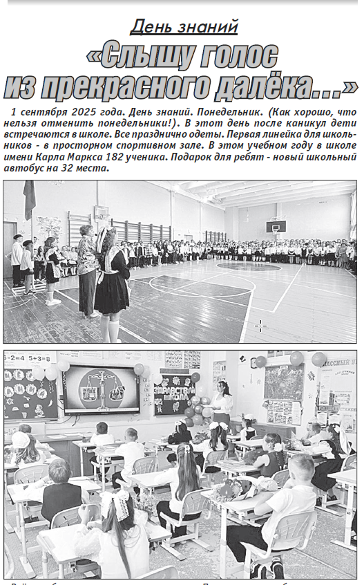 В нашей школе им. Карла Маркса на Красном Профинтерне тоже прошла торжественная линейка. Ребята, красивые и нарядные, собрались в спортивном зале. Слова теплых поздравлений в адрес учеников и учителей прозвучали от директора школы Светланы Владимировны Ленивковой и приглашенных гостей.